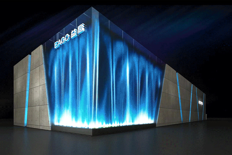 展台面积:280平 展台类型:眼镜展 主体材料:木结构 LED灯泡 展台关键词:在黑暗中的光亮 1600颗LED灯泡