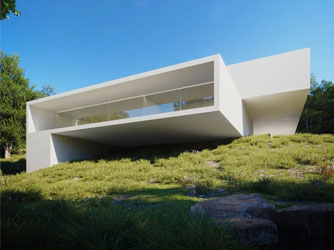 项目由两个连同嵌入场地的巨大体量构成。每一个体量都被不同地布局,以提供周围不同的景观视野。两个堆叠体量通过位于它们之间的连接点处的中央核心进行对话。第一个体量容纳了一层日间活动区域,该层位于邻近体量之上,作为通道空间,面向游泳池打开。游泳池位于由第二个体量所创造的内部庭院,其上方是悬挑结构,泳池因此成为了带有屋顶的“花园”。